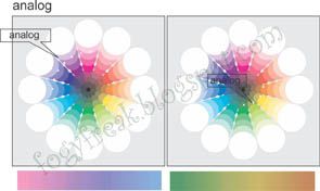 Adalah warna-warna beda hue yang bersebelahan, sehingga kombinasinya akan lebih mudah diteima mata dan lebih berani dibanding dengan warna monocrom.