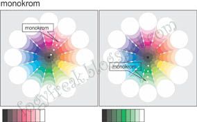 Adalah suatu warna Hue yang dikombinasikan dengan gelap dan terang. Disebut juga monokrom. Kombinasi warna ini sangat sederhana, tidak banyak resiko dan mudah diterima mata. Kelemahannya kombinasi ini akan membosankan dan mudah ditinggalkan.