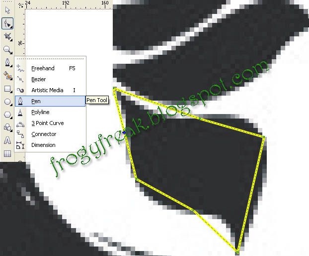 Tips: gunakan warna out line yang mudah di lihat (contras dengan gambar yang akan di trace)klik kanan pada chart warna yang ada di samping kanan.